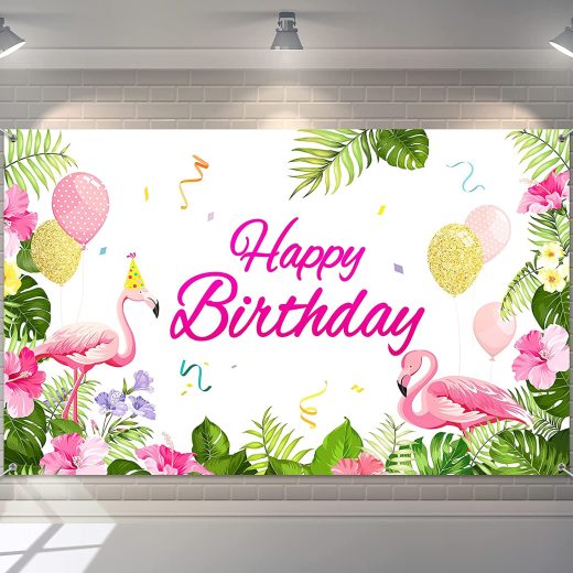 Summer Flamingo Themed Party Decoration Backdrop Flamingo Banner Party Supplies Tropical Floral Photo Booth Hawaiian Themed Party Decoration for Bi…