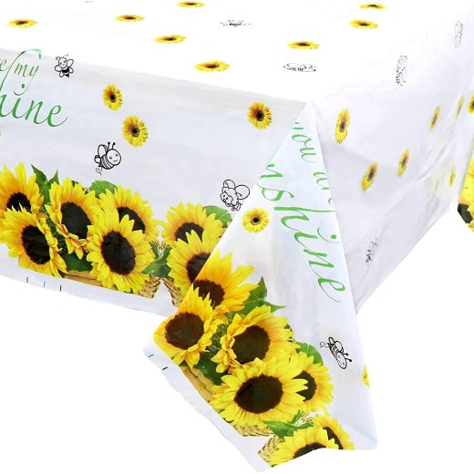 Sunflower Plastic Tablecloth Honey Bee Waterproof Disposable for Birthday Party Baby Shower 2 Pack Kitchen Table Decor Yellow Floral Printed Table …