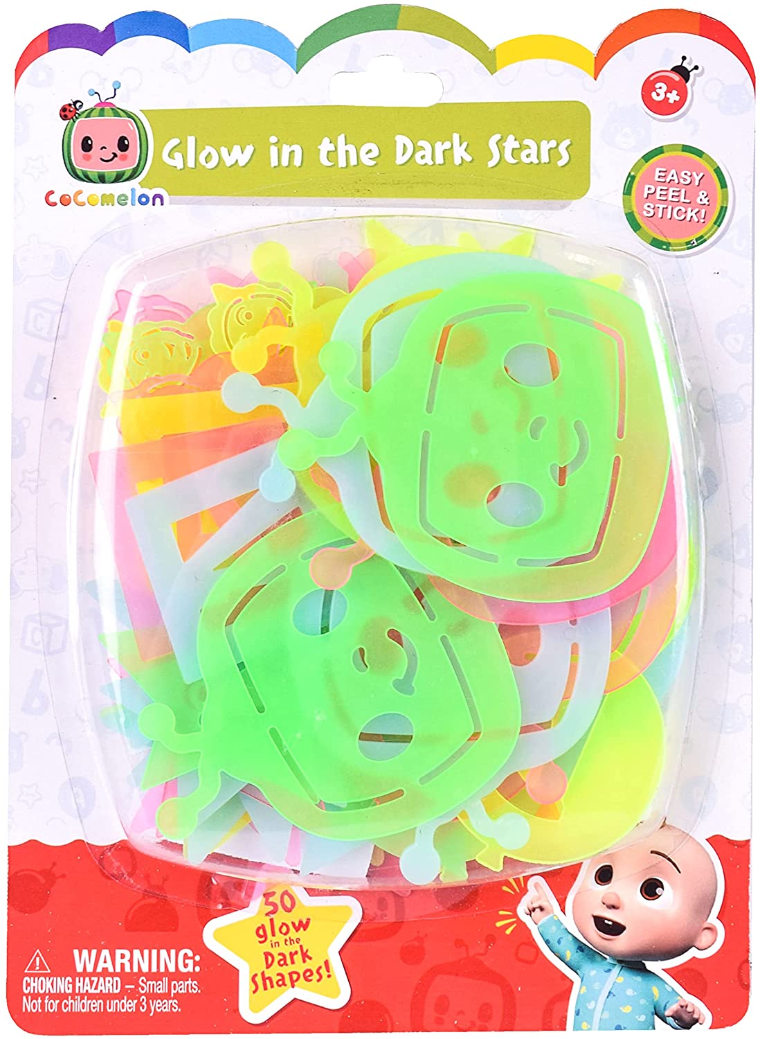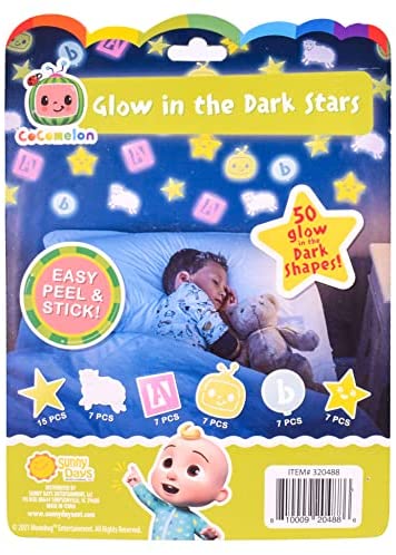 Sunny Days Entertainment CoComelon Glow in The Dark Stars | 50 Assorted Shape and Color Stickers for Kids | Peel and Stick Wall Decals,Multi