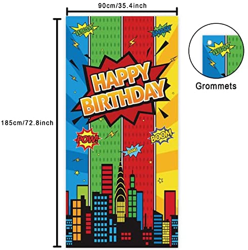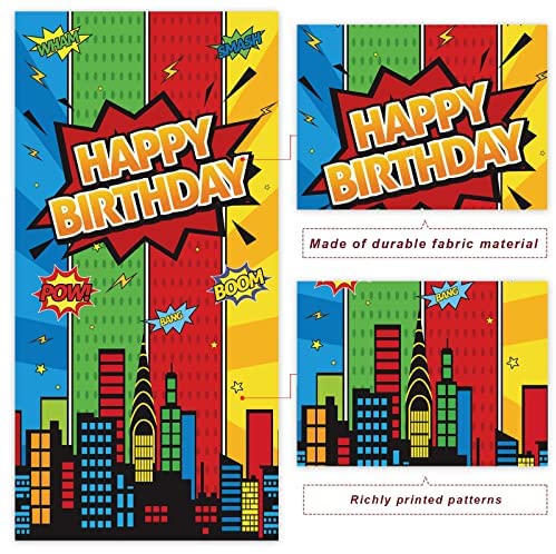 Super City Happy Birthday Banner Backdrop Background Photo Booth Props Bat Superhero Building City Scenes Dark Knight Theme Decor for 1st Birthday Party Baby Shower Favors Flag Supplies Decorations