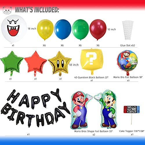 MARIO BROS THEMED PARTY DECORATION – Unique super mario party character themed balloon included: (1) mario 3D balloon 18, (1) luigi 3D balloon 18, …