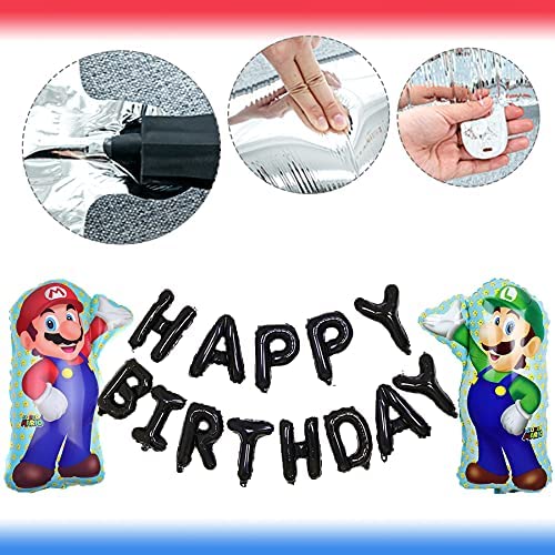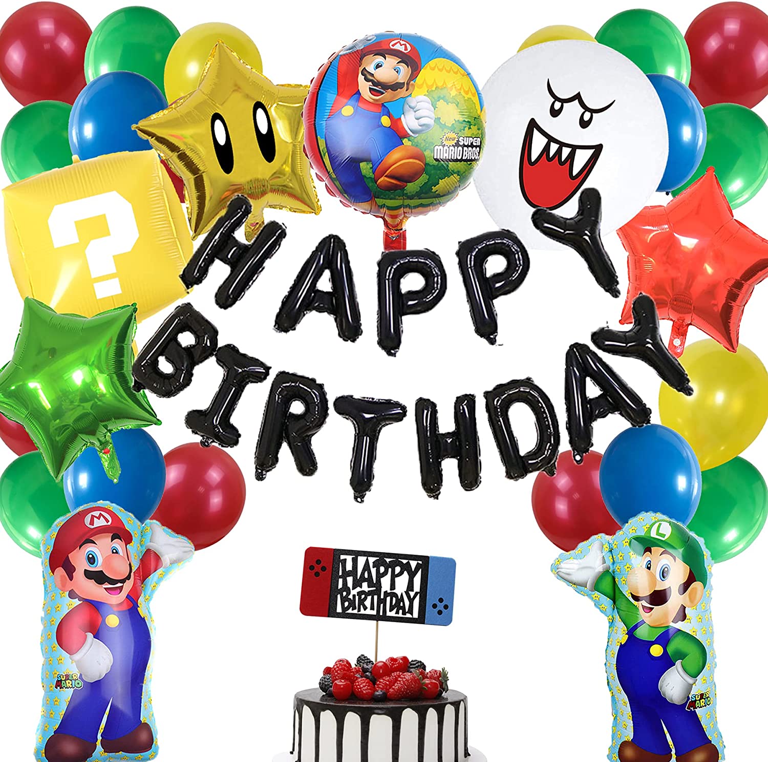 Super Mario Birthday Party Supplies – Mario and Luigi Bros Game Balloons , Vedio Game Party Decorations Cake Toppers for Boys Kids