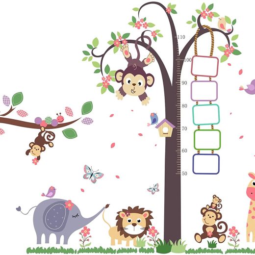 Description:SUPERDANT 3 Sheets/Set Height Growth Chart Wall Sticker Monkey Forest Animals Self-Adhesive Cartoon Height Wall Sticker Material: PVC S…