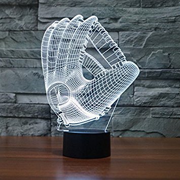 SUPERNIUDB 3D Baseball Gloves Visual Night Light Acrylic 3D LED USB 7 Color Change LED Table Lamp Xmas Toy Gift