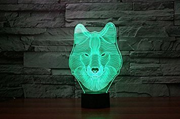 SUPERNIUDB Animal Wolf Decor 3D Night Light Table Desk Optical Illusion Lamps 7 Color Changing Lights