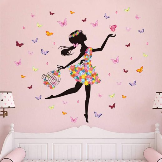 Safety for Families: Nursery wall decals made of eco-friendly vinyl, inks and adhesive, containing non-toxic and are odor free, keeping your families far from chemicals harm Featuring with adorable girl, butterflies and pink flowers for baby girl nursery decoration, will add more fun for family Peel and Stick Easily: It can be stuck to any smooth surfaces, walls, furniture, tiles, mirrors and windows, reusable without leaving damage or residue Comes in 2 sheets, sheet size: 11.8 × 35.4 (30cm × 90cm). DIY wall stickers, pasted freely according to your preferences. Ideal to decorate your girls bedroom, living room, nursery room If youre not satisfied with your purchase or have any problems on installation, please feel free to contact us