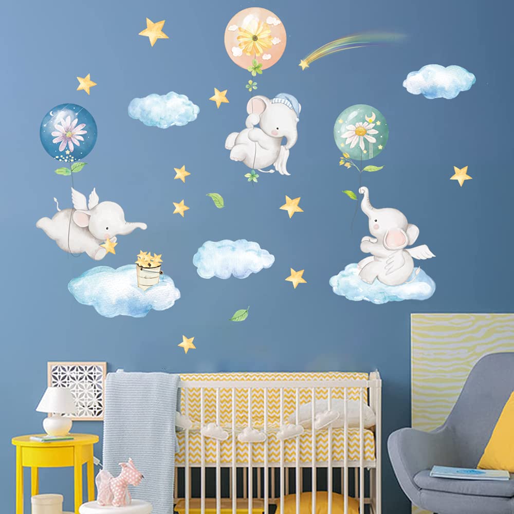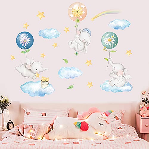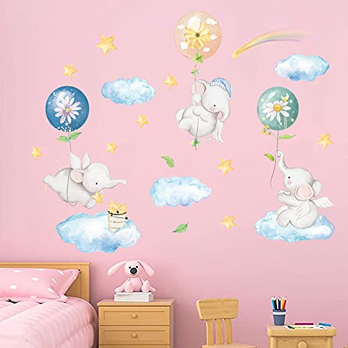 Supzone Cartoon Elephant Wall Decals Colorful Balloon Flying Animals Wall Stickers DIY Removable Wall Art Mural Sticker for Baby Nursery Children Kids Room Bedroom Playroom Living Room Wall Decor