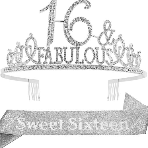 Sweet 16 Gifts for Girls, Sweet 16 Birthday Decorations, Sweet 16 Tiara Silver, Sweet 16 Sash, Sweet 16 Crown and Sash, Sweet 16 Sash and Tiara, 16th Sash and Tiara, Sweet 16 Party Supplies
