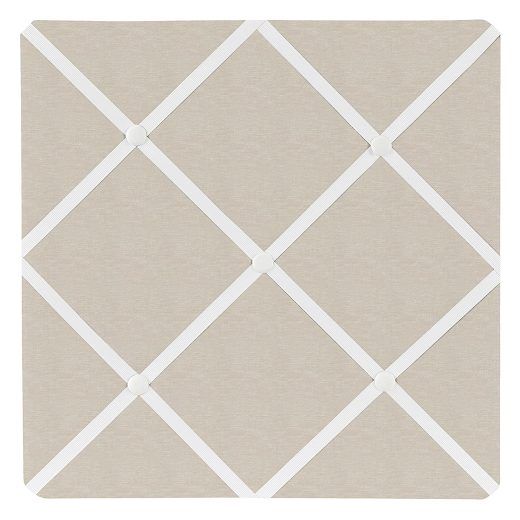 The memo board dimensions are 13in. x 13in. Each memo board has coordinating button detail and decorative ribbon so that you can insert photos, notes, and memos. Metal Hangers on Back for easy hanging. No Assembly Needed. This design has matching accessories such as window treatments, hampers, shower curtains, memory photo boards, body pillow cases and decorative pillows. Note: Pushpins cannot be used with this memo board. It is designed with decorative ribbon to slip your mementos behind