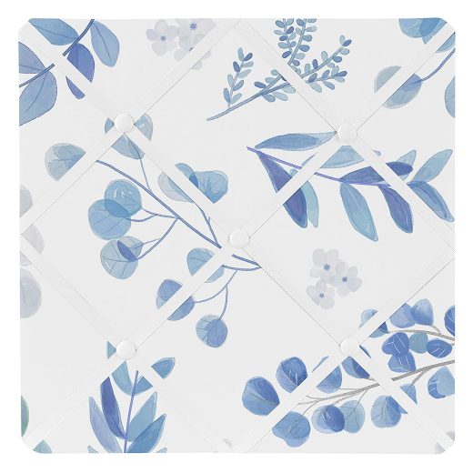 Sweet Jojo Designs Floral Leaf Fabric Memory Memo Photo Bulletin Board – Blue Grey and White Boho Watercolor Botanical Flower Woodland Tropical Garden