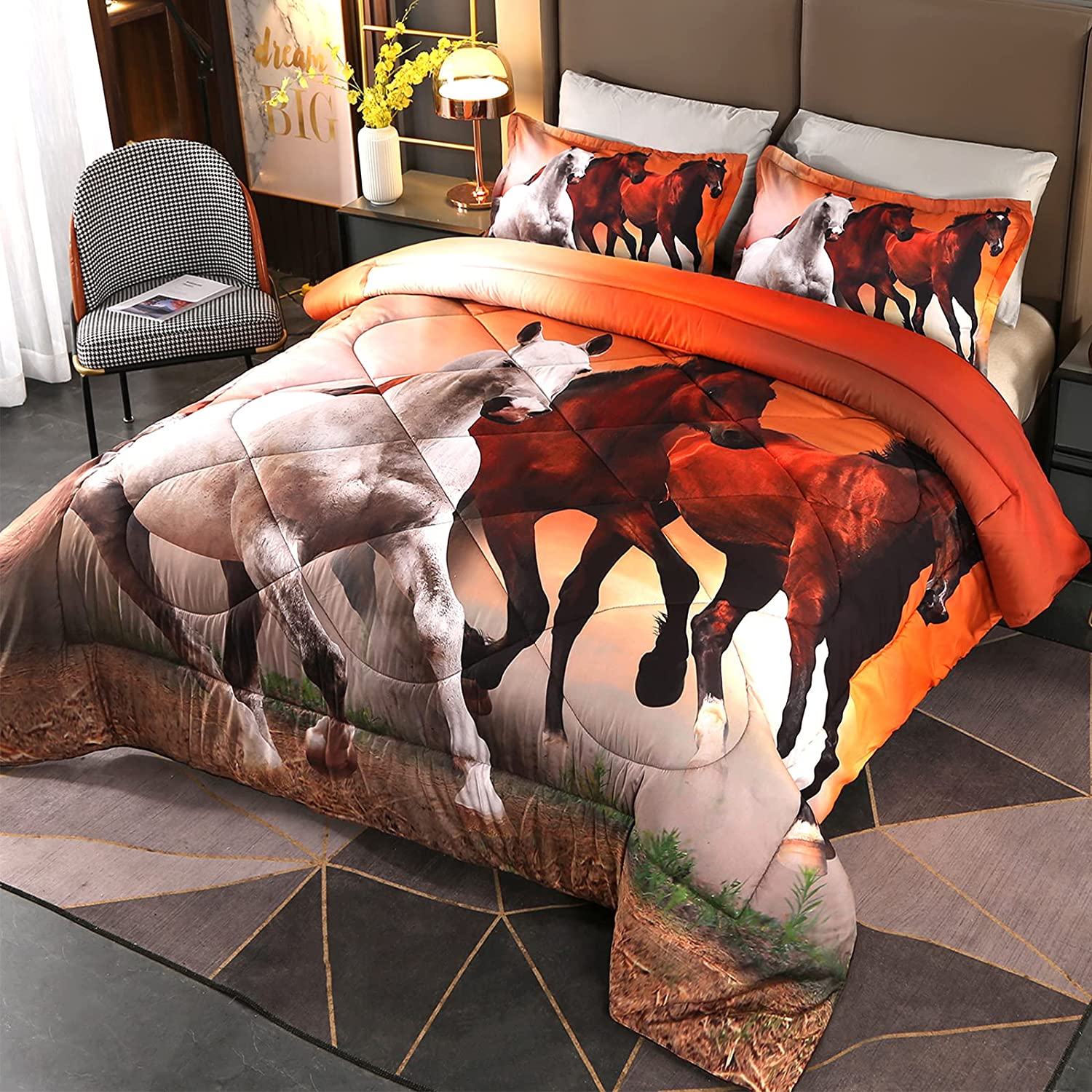 4 piece Twin bedding set: 1-Lightweight Comforter, 1-Standard Sham, 2-Window Valances Comforter (62in x 86in), Sham (20in x 26in), Valances (54in x…