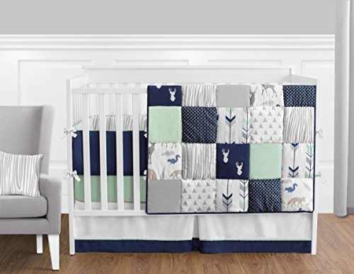 Sweet Jojo Designs Size 4 Count (Pack of 1) Color Navy Blue, Mint, Grey and White Material Paper Theme Baby