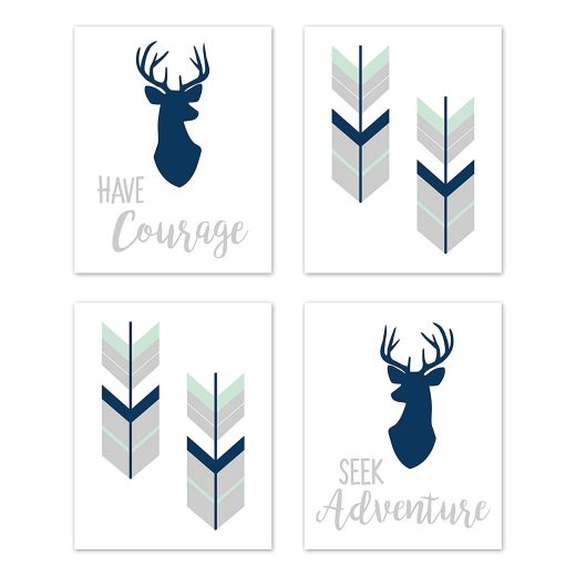 Be the first to review “Sweet Jojo Designs Navy Blue, Mint and Grey Woodland Deer Wall Art Prints Room Decor for Baby, Nursery, and Kids for Woodsy Collection – Set of 4 – Seek Adventure Have Courage” Cancel reply