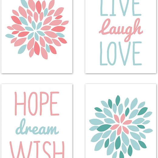 Be the first to review “Sweet Jojo Designs Turquoise and Coral Floral Wall Art Prints Room Decor for Baby, Nursery, and Kids for Emma Collection – Set of 4 – Live Laugh Love” Cancel reply