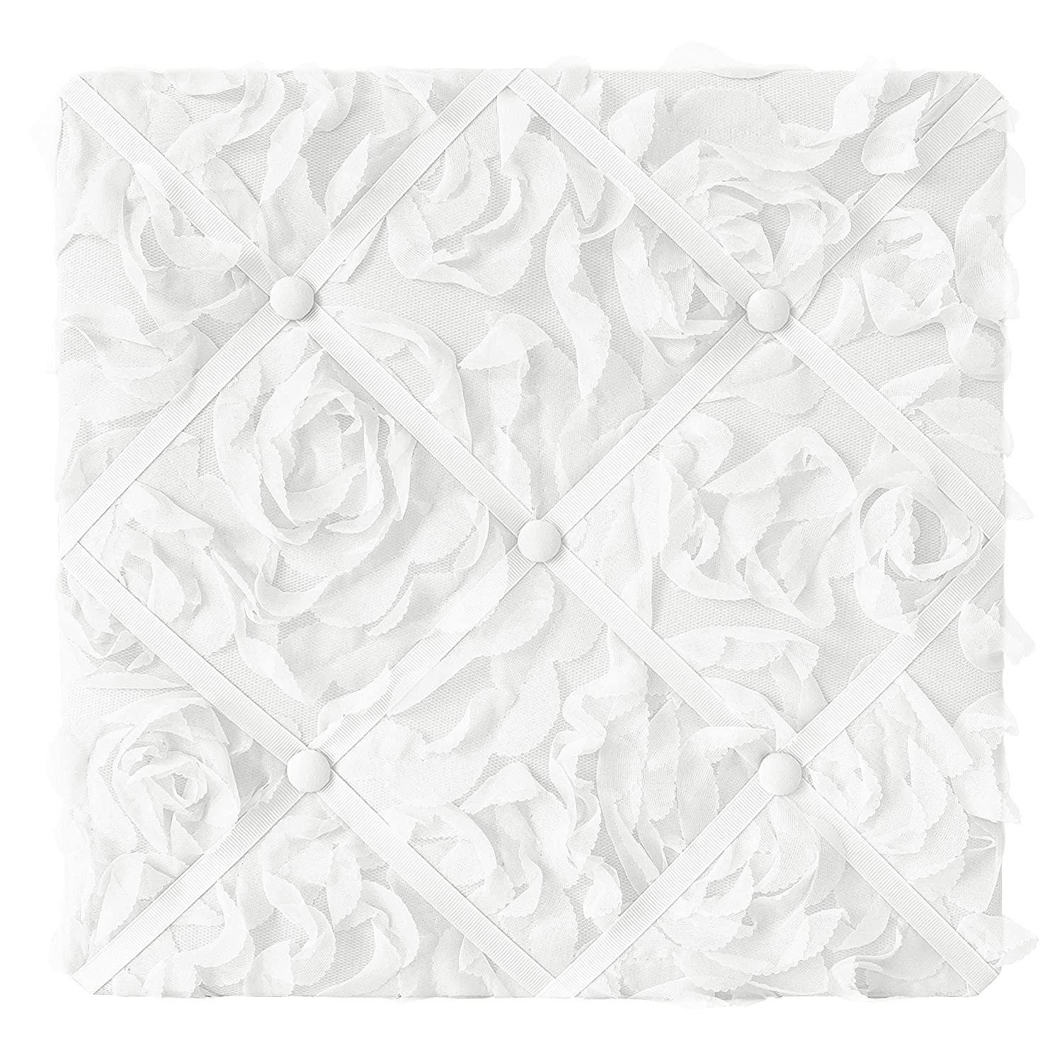 Sweet Jojo Designs White Floral Rose Fabric Memory Memo Photo Bulletin Board – Solid Flower Luxurious Elegant Princess Vintage Boho Shabby Chic Luxury Glam High End Roses