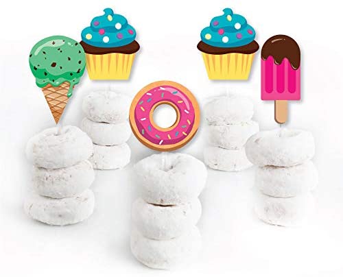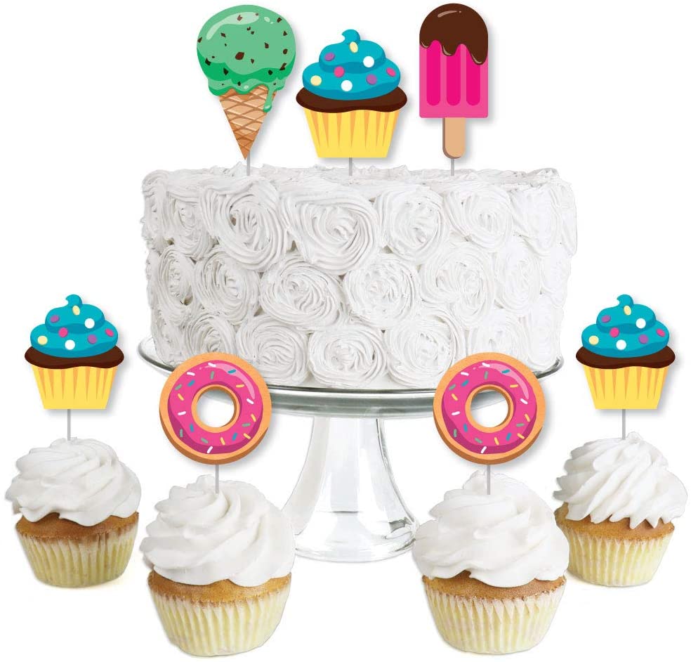 Sweet Shoppe – Dessert Cupcake Toppers – Candy and Bakery Birthday Party or Baby Shower Clear Treat Picks – Set of 24