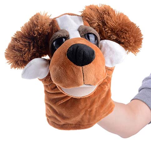 SweetGifts Plush Dog Puppy Open Mouth Hand Puppets Animal Toys for Imaginative Pretend Play Stocking Storytelling