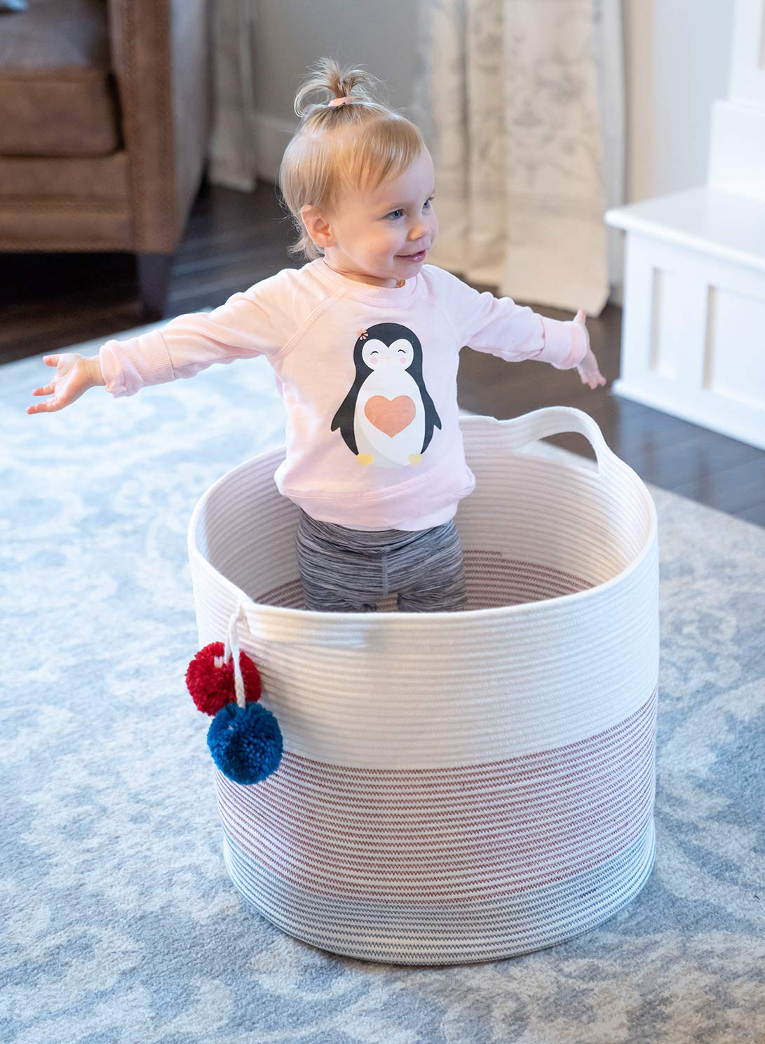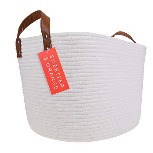 Sweetzer & Orange Large Woven Cotton Rope Storage Basket (Vegan Handles) – Blanket Storage Baskets, Laundry Basket, Toy Storage, Nursery Hamper – Decorative Off White Basket for Living Room