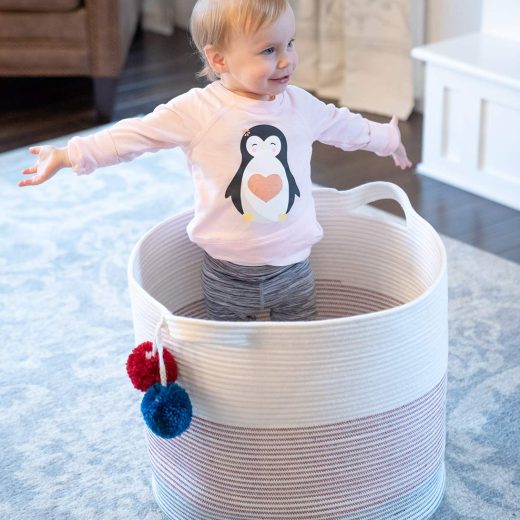 STURDY AND STUNNING: You’ll notice this is one Woven Basket that looks beautiful while also holding up to the stress of daily life. In fact, we stress tested the handles, and they take up to 20lbs! The extra tight weave ensures your storage tote stands up by itself, all ready for what life throws its way! LARGE YET ERGONOMIC: 17.5” long, 15” wide and 11.5” tall. Our storage totes are big enough for those soft toys and blankets. Use it as a laundry hamper or shoe bin. Its a great alternative to a wicker or seagrass basket! FILL IT TO THE BRIM: You’ll notice our reviewers are happily using this gorgeous bag it as a toy organizer, blankets, and laundry bin. But of course, you can also use it as baby nursery baskets for diaper storage, magazine basket, book basket or even as decorative baskets for plants and shelf baskets. SIMPLY BEAUTIFUL: The Faux Leather Handles give this rope basket a unique look, and add a beautiful accent to earth toned décor and wooden furnishings. There are two colors to choose from: Traditional Earthy White, and Modern Blue Striped. Go ahead and choose the one that matches your home best. TAKING CARE OF YOUR BASKET: Your woven storage basket will arrive flat, so the first thing to do is open it and give it a shake. You can remove any creases by laying a towel over it and then gently iron. This woven hamper is not machine-washable, but can be hand-washed or dry cleaned. You’ll also get our 12-Month Money Back Guarantee. Sweetzer & Orange – Strong on Stylish Organization