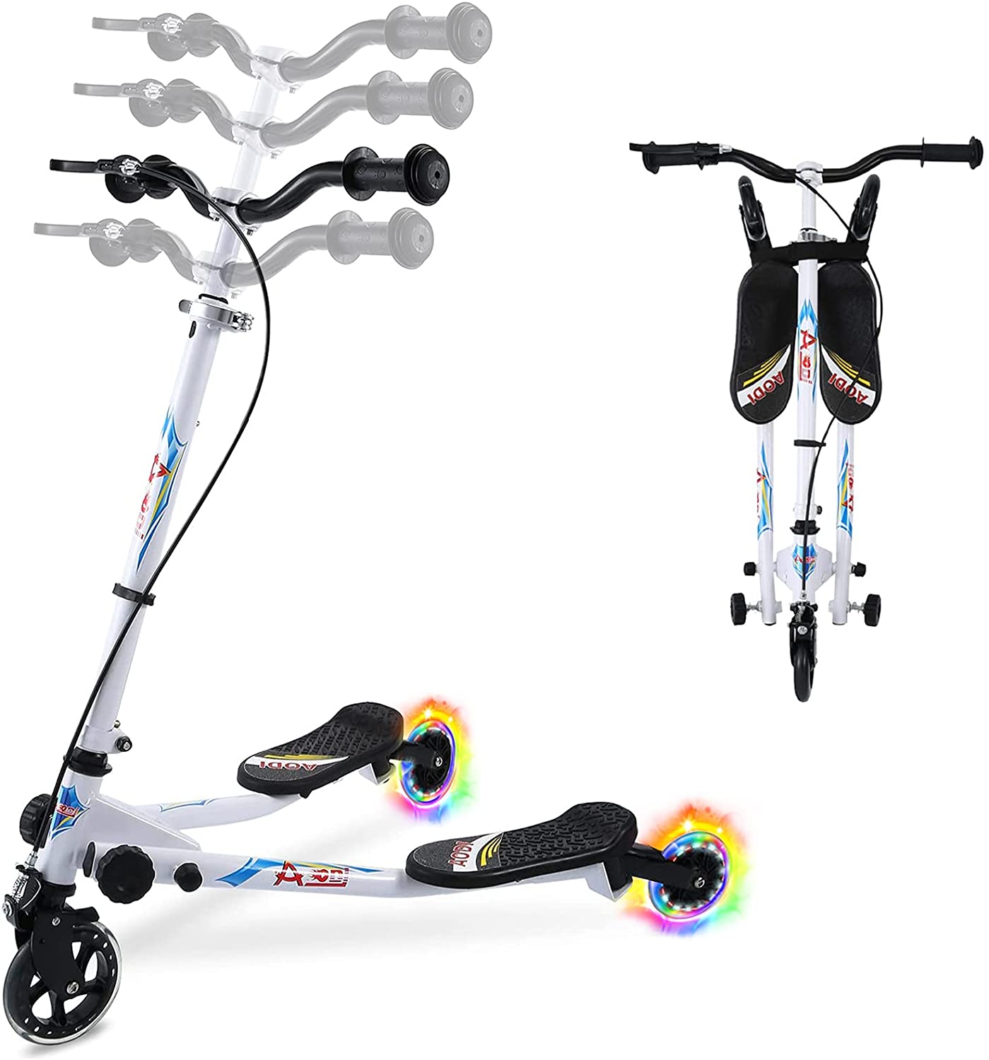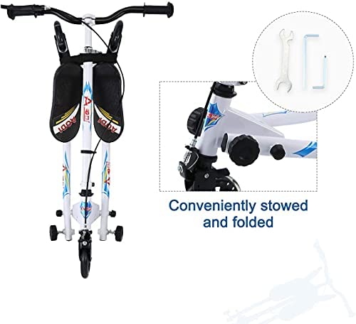 Swing Scooter for Kids, 3 Wheels Foldable Wiggle Scooter Push Drifting with Adjustable & 2 Rear LED Wheels Kicks Scooter for Boys and Girls Ages 3-8
