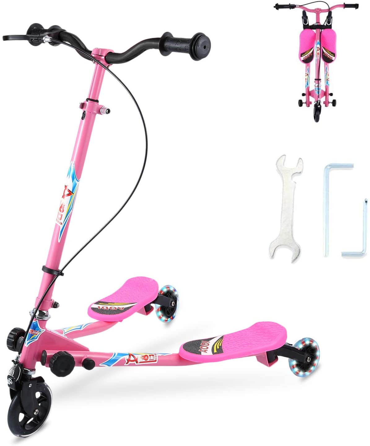 Swing Scooter for Kids, 3 Wheels Wiggle Scooter Foldable Self-Propelling Drift Kick Speeder Scooter with 3-Level Adjustable/Illuminated LED Wheels for Boys Girls Ages 3-8 Years