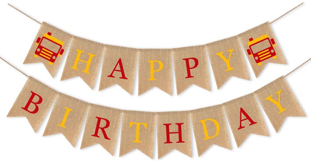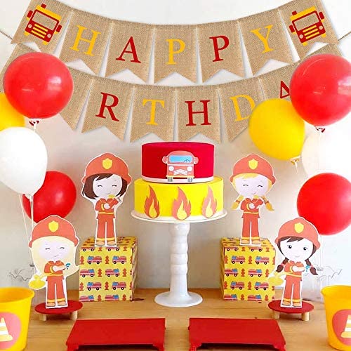 SWYOUN Burlap Firetruck Happy Birthday Banner Fireman Birthday Party Decoration Bunting Garland Supplies