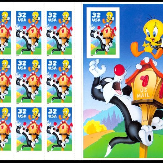 Sylvester and Tweety Sheet of Ten Stamps with Imperforate 10th Stamp Error Scott 3205