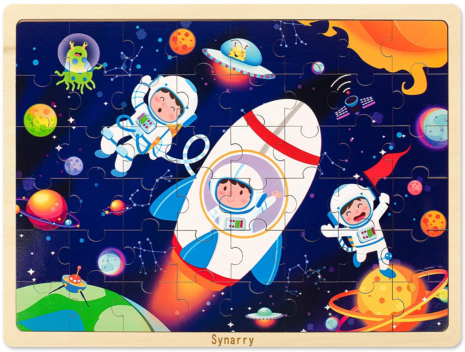 FUN SPACE PUZZLES FOR KIDS – The Kid puzzle features 48 durable wooden puzzles pieces that fit together smoothly to display rocket space theme when…
