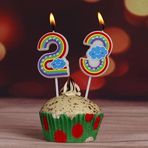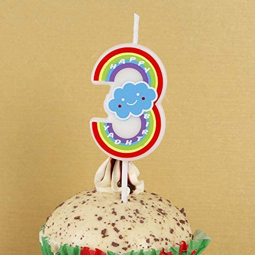 T-shin Rainbow Happy Birthday Candle,Cute Cloud Number 3 Candles,Long Thin Baby Shower Kids Children Candles,Party Supplies,Cake Decoration (Blue-3)