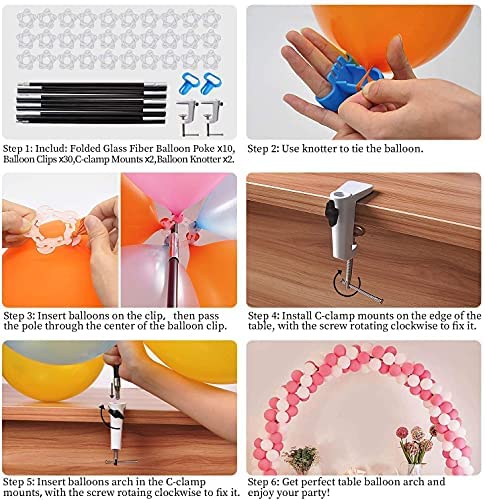 Table balloon arch kit: Including 2 metal durable table C-clamp mounts and 10 balloon arch poles, 30 pcs balloon clips. Each pole measures 11.8 inc…