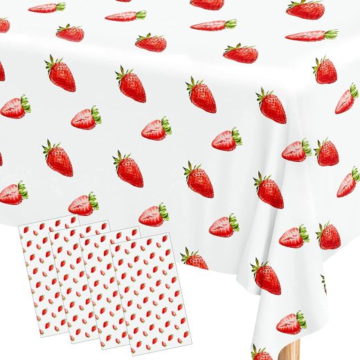 Tablecloth for Strawberry Party Supplies -Strawberry Party Table Cloth, Strawberry One Table Cover Clothes for Sweet One Strawberry Birthday Decor for One Berry Sweet Girl Birthday (4 Pieces)