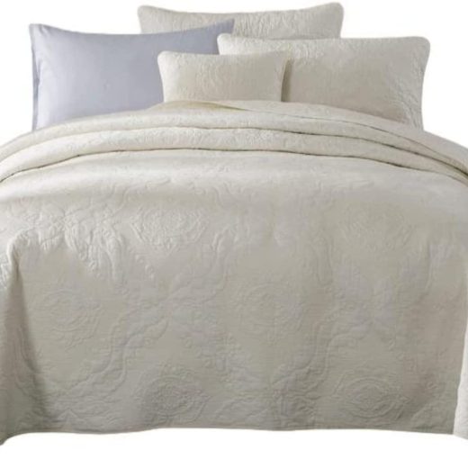 Tache Cotton Damask Paisley Vanilla Cream Ivory Elegant Matelassé Embroidered Lightweight Coverlet Quilt 3 Piece Set, King