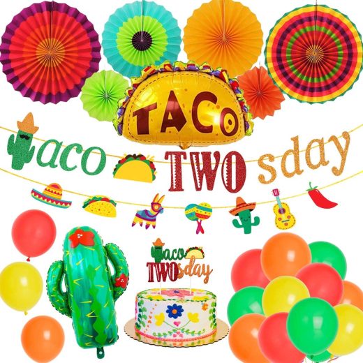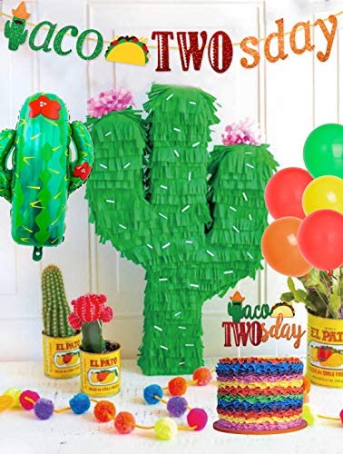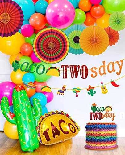Taco Twosday Birthday Party Decorations taco second Banner Cake Topper Cactus Balloons for Mexican Fiesta 2nd Birthday Party Supplies Kit
