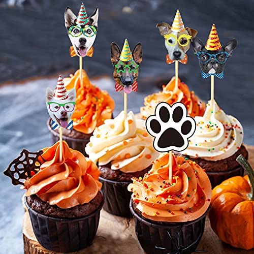 TAJIAA 48PCS Dogs Face Cupcake Toppers – Dogs Cupcake Toppers – Puppy Pet Theme Birthday Party Decorations Supplies