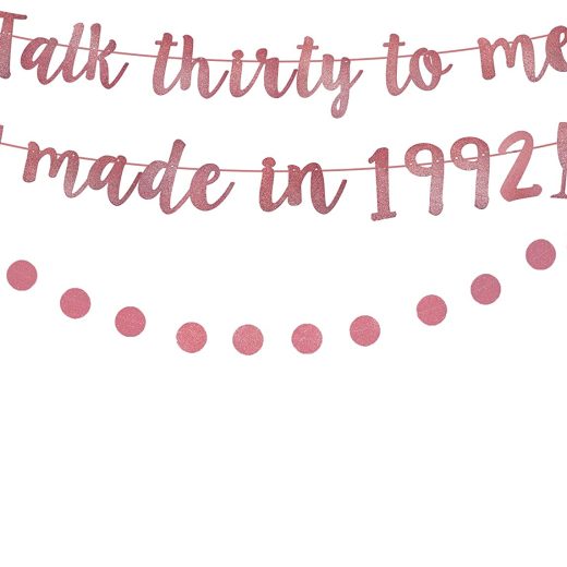 Talk Thirty to Me Banner, Made in 1992 Birthday Banner, Rose Gold Glitter Happy 30th Birthday Party Decorations,30th Birthday Banner,Lady Women 30t…