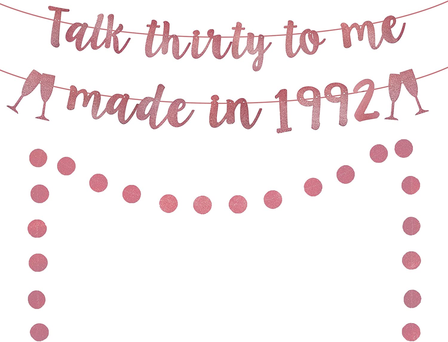 Talk Thirty to Me Banner, Made in 1992 Birthday Banner, Rose Gold Glitter Happy 30th Birthday Party Decorations,30th Birthday Banner,Lady Women 30th Birthday Party Photo props Supplies(Pre-Assembled)