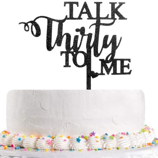 Talk Thirty to Me Cake Topper,Black Glitter Dirty 30 for 30th Birthday Wedding Anniversary Hello 30 Party Decoration Supplies(Acrylic)