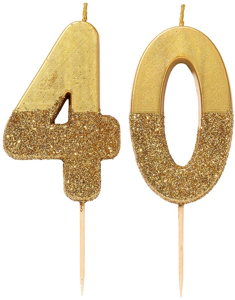 Talking Tables 40th Birthday Number Cake Candle Topper Gold Dipped in Glitter