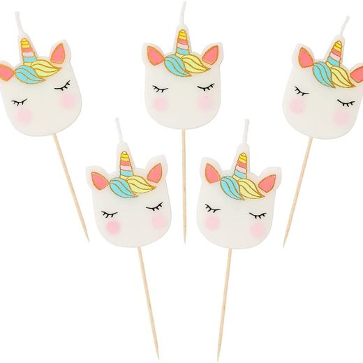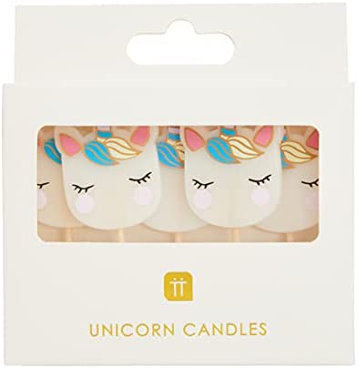 Talking Tables Pack of 5 Face Shaped Gold Glitter Detail, Cake Topper Candle Birthdays Partyware Accessories for Kids Boys Girls Daughter Niece Unicorns Party, One, UNICORNCANDLES