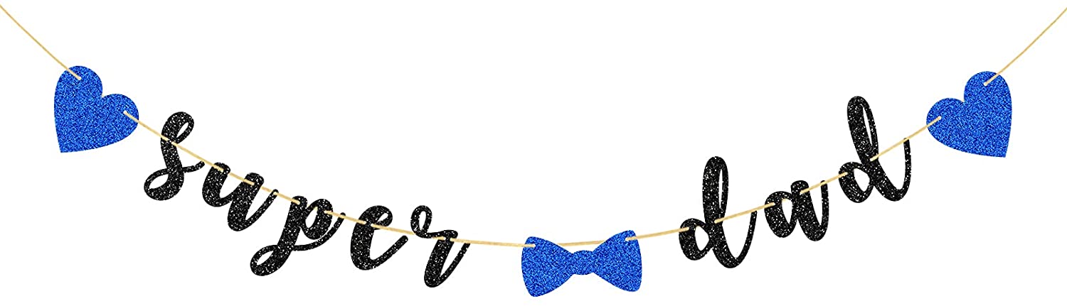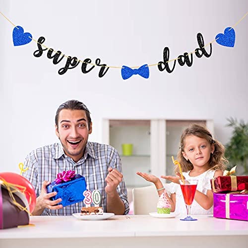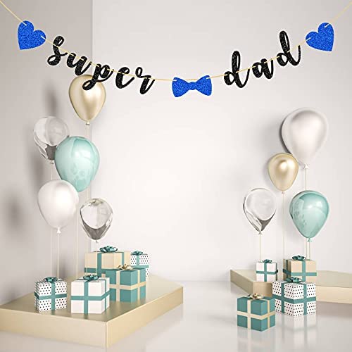 Talorine Glitter Super Dad Banner, Dad Birthday Party Banner, Happy Fathers Day Party Decorations, Black and Blue