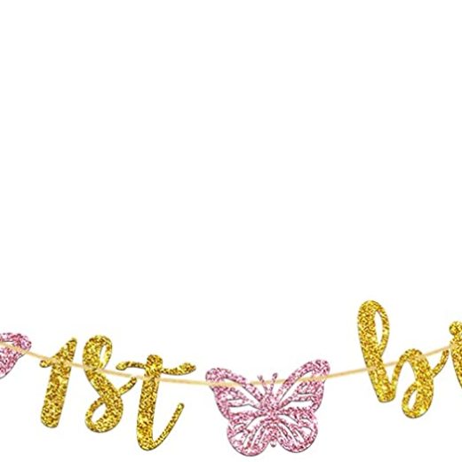 Talorine Happy 1st Birthday Banner, Girls First Birthday Butterfly Banner, Baby Girl 1st Birthday Party Decorations Supplies, Gold Glitter