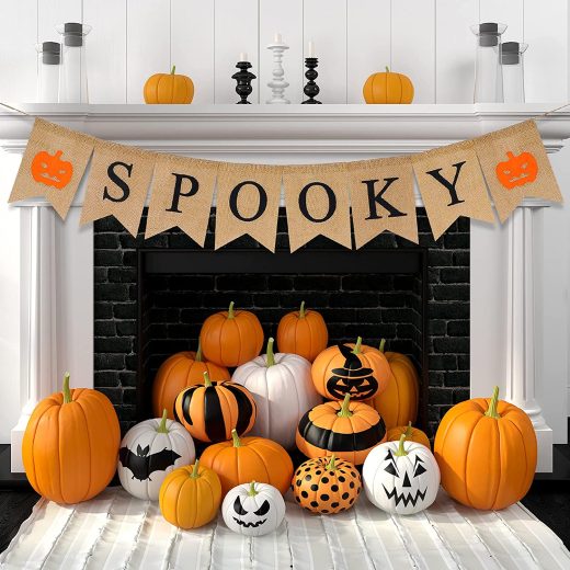 Tatuo Jute Burlap Spooky Banner Halloween Banner, Hanging Halloween Pumpkin Banner Home Decor Bunting Fireplace Garland Halloween Party Decorations Supplies