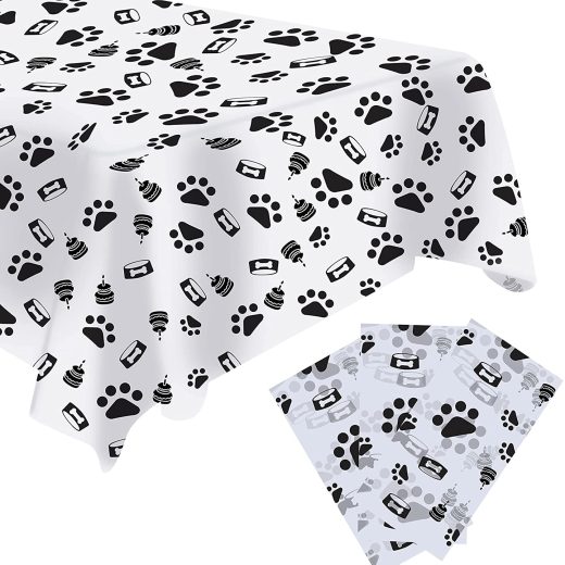 Disposable Rectangle Table Cover:Includes 3 packs of disposable plastic tablecloths with many dog footprints, cakes, and dog bowl patterns printed on them, in black and white colors. Very suitable for party decorations. Durable material: This tablecloth is made of highly patient plastic material, which is waterproof, oil-proof and durable. Adjustable size: The maximum size of the whole tablecloth is 55inchx110ininch (140cmx280cm), and it has a wide range of applications. Whether it is a large table or a wall background, it can satisfy you. Multiple uses: This tablecloth can be used for birthday party tablecloths, party background cloths, pet birthday tablecloths, outdoor picnics, garbage storage cloths, household dust-proof cloths, etc. There are as many as dozens of uses, and it has 3, satisfying Your daily needs. Convenient to clean up: If he is dirty, you can wipe him clean with a cloth and reuse it. When the party is over or the picnic is over, you can directly wrap the trash in it, tie the knot, and take it away and throw it in the trash can quickly. Its environmentally friendly, so hurry up and order.