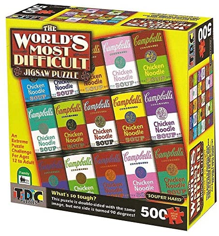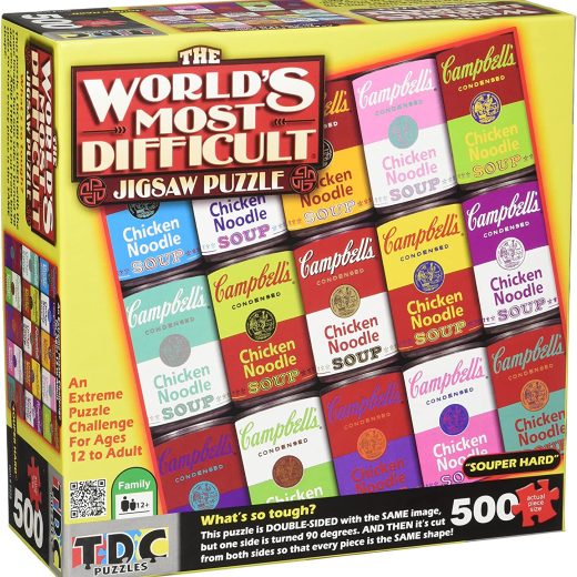 SOUPER HARD: Get your hands on the world’s hardest puzzle. The entire puzzle measures 15 x 15 inches when assembled and contains 500 Campbell’s Sou…