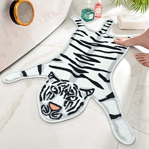 TEALP Cute Bath Mat Washable Bathroom Rugs Non Slip Floor Tiger Rugs for Boys, Kids Water Absorbent Animal Rug for Kitchen/Bedroom/Living Room/Toilet 20x23in, 21.5