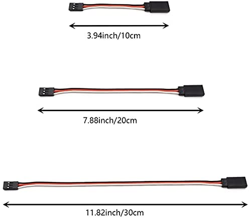 Specification:Name: Male to female RC servo extension lead wiresConnector: 3-pin male to femaleDimensions: 10 cm / 3.94 inches, 20 cm / 7.9 inches, 30 cm / 11.8 inchesCable color: Red, white and blackCable type: 0.08TS wiresThere is a female connector on one side and a male connector on the other side, which can be connected to the receiving device and the steering engine.These extension cables with a wide range of applications, can be used to Futaba and JR servo, remote control cars, airplanes, helicopters and drones servo connection or receiver connection.Package Includes:4pcs 10 cm long servo cable connector4pcs 20 cm long servo cable connector4pcs 30 cm long servo cable connector