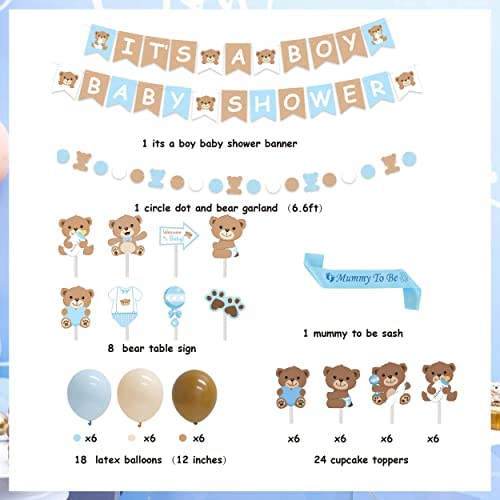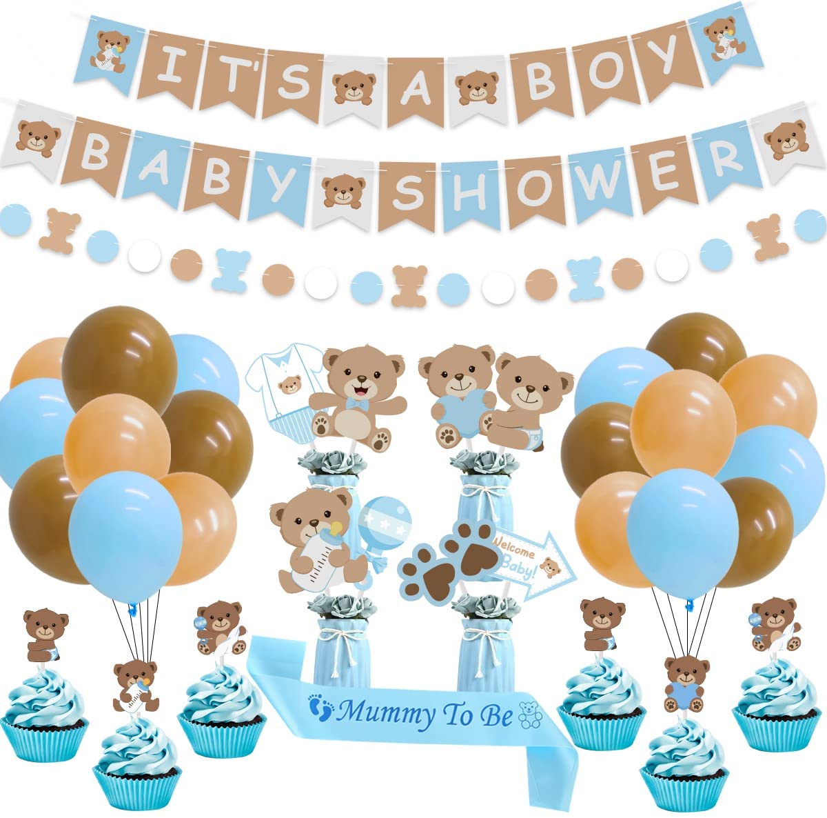 Teddy Bear Baby Shower Decorations IT S A BOY BABY SHOWER Banner Bear Centerpiece Sticks Cake Topper Cupcake Toppers for Teddy Bear Theme Birthday Party Supplies Blue and Brown