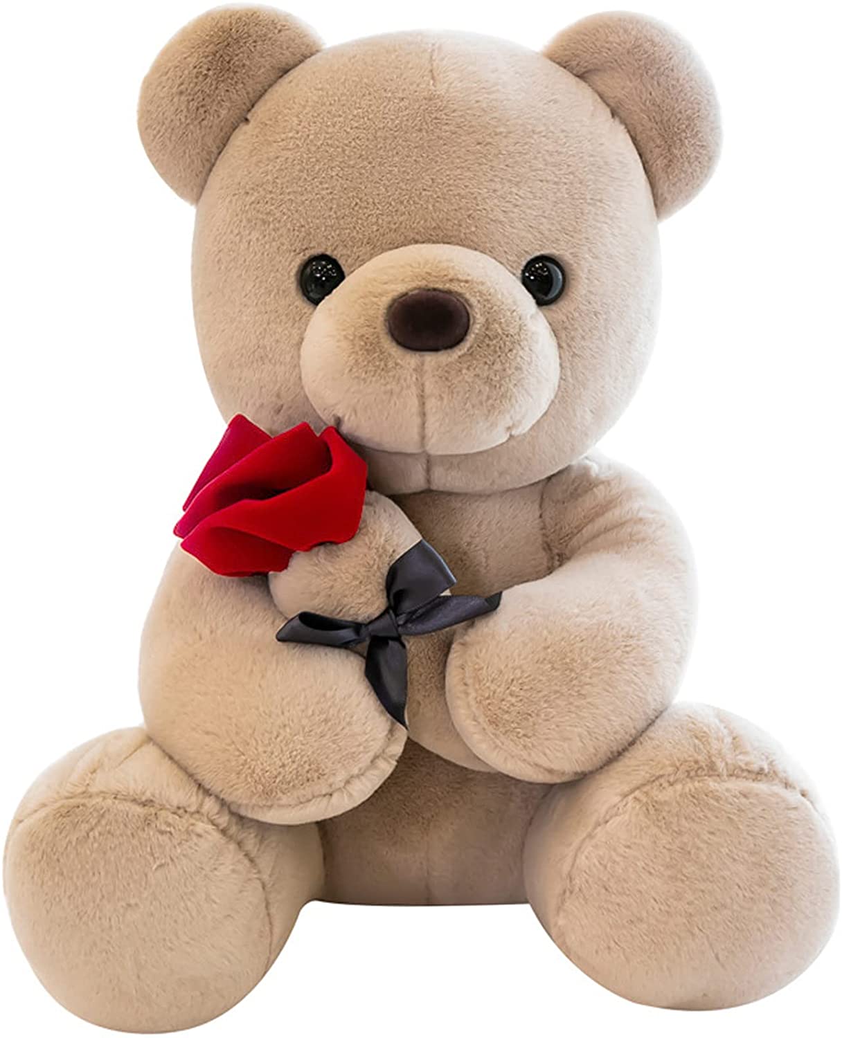 Teddy Bear Plush Toy with Rose, Cute Stuffed Animal Toys Pillow Coco Bear Doll Gift for Kids Boys Girls Birthday Christmas Valentines Day (9.1in/23cm, Brown)