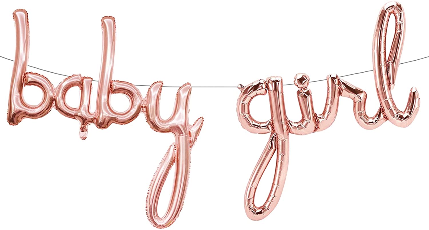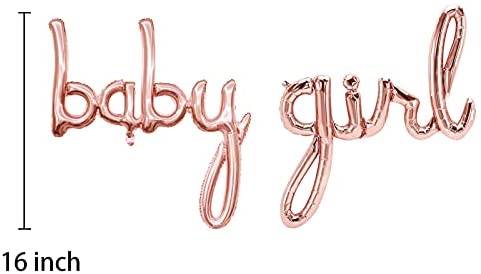 Baby Girl Balloons, Item included cursive letter balloon: baby girl, 16 inch; 1pcs straw; 1 string Baby shower decorations for girl, beautiful color and cursive alphabet letter, which bring you ideal and impressive effect Rose gold foil balloon, Baby boy letter balloon is made of aluminum foil, premium and durable material Girl baby shower decorations, a hit for your gender reveal girls party decorations, reveal boy party supplies, baby girl shower decor Easy to use, baby girl balloon support air only, You can use a straw or pump to inflate balloon with air, easy to install
