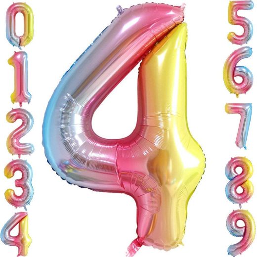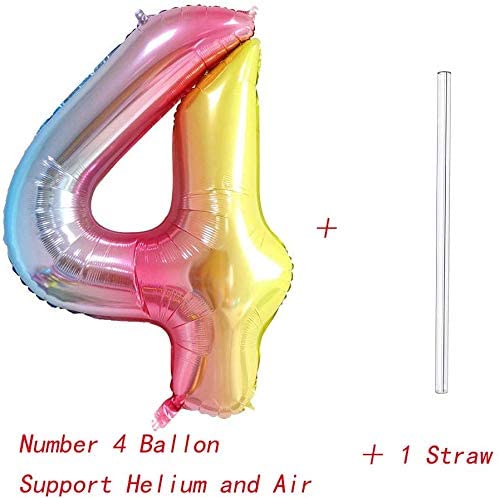 Number 4 balloon,number 4 birthday decorations is perfect for decorating a childs 4 birthday or 4 anniversary party decorations Rainbow number 4 balloons, straw included, color: Rainbow(Colorful Gradient), material: nylon foil Giant 4 balloon, 40 inch big size, makes a memorable impression for your birthday party and special event Helium foil number balloon, helium balloon support helium or air, helium can float Birthday party decorations, Balloon can be repeated use, convenient inflation and deflation